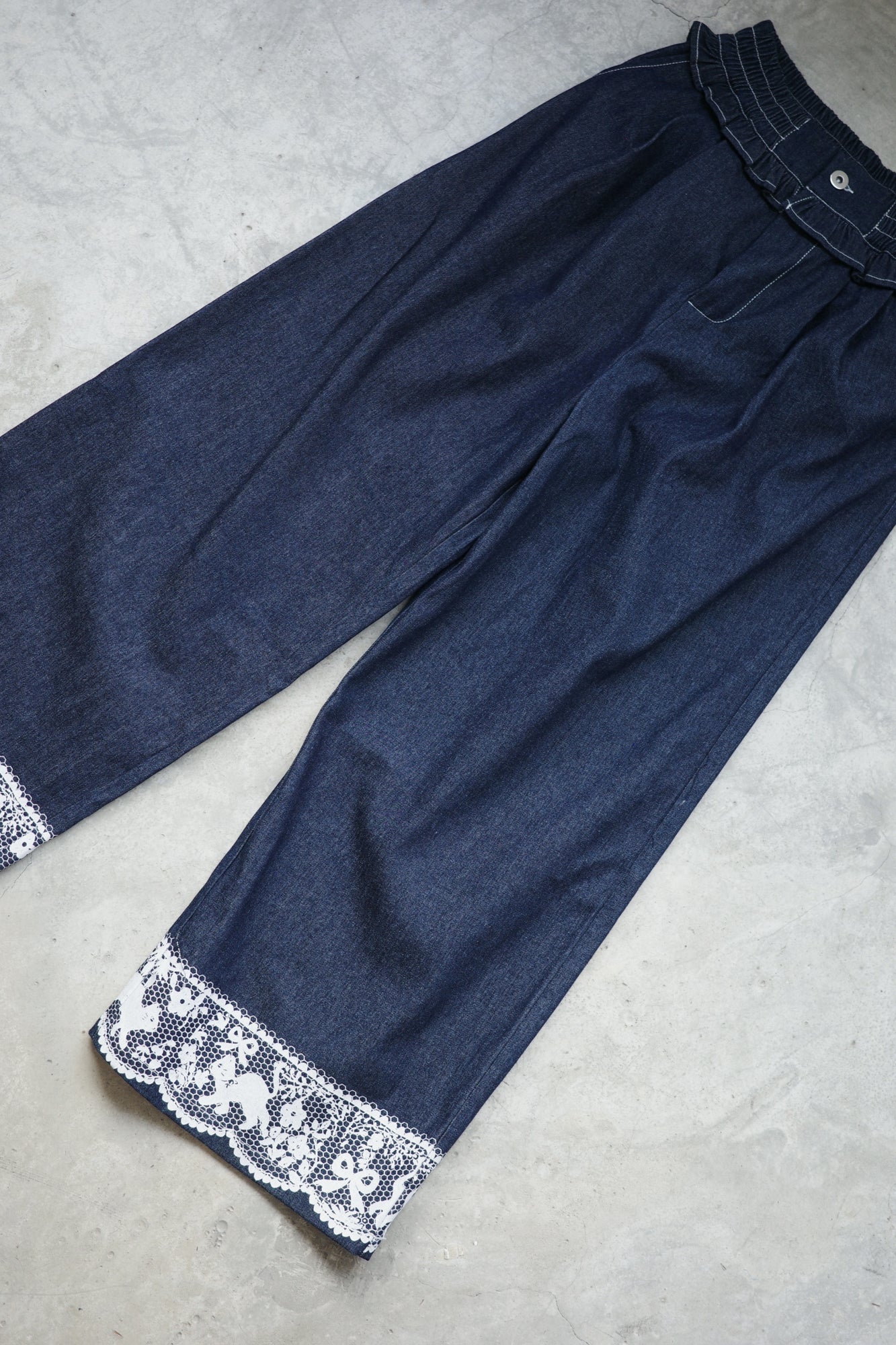 • Lace cat print ruffled trousers