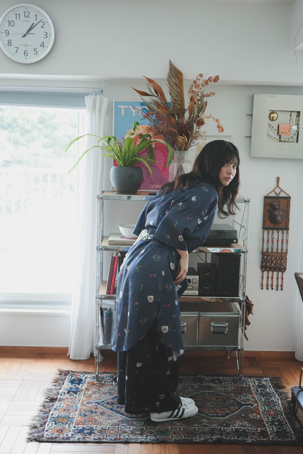 • Cat head colorful floral short-sleeved long-sleeved shirt dress