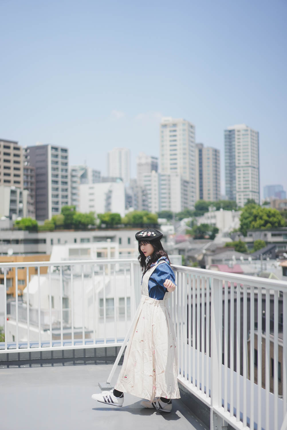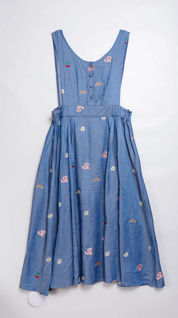 Sunny Cat Island Embroidered Denim Worker Skirt