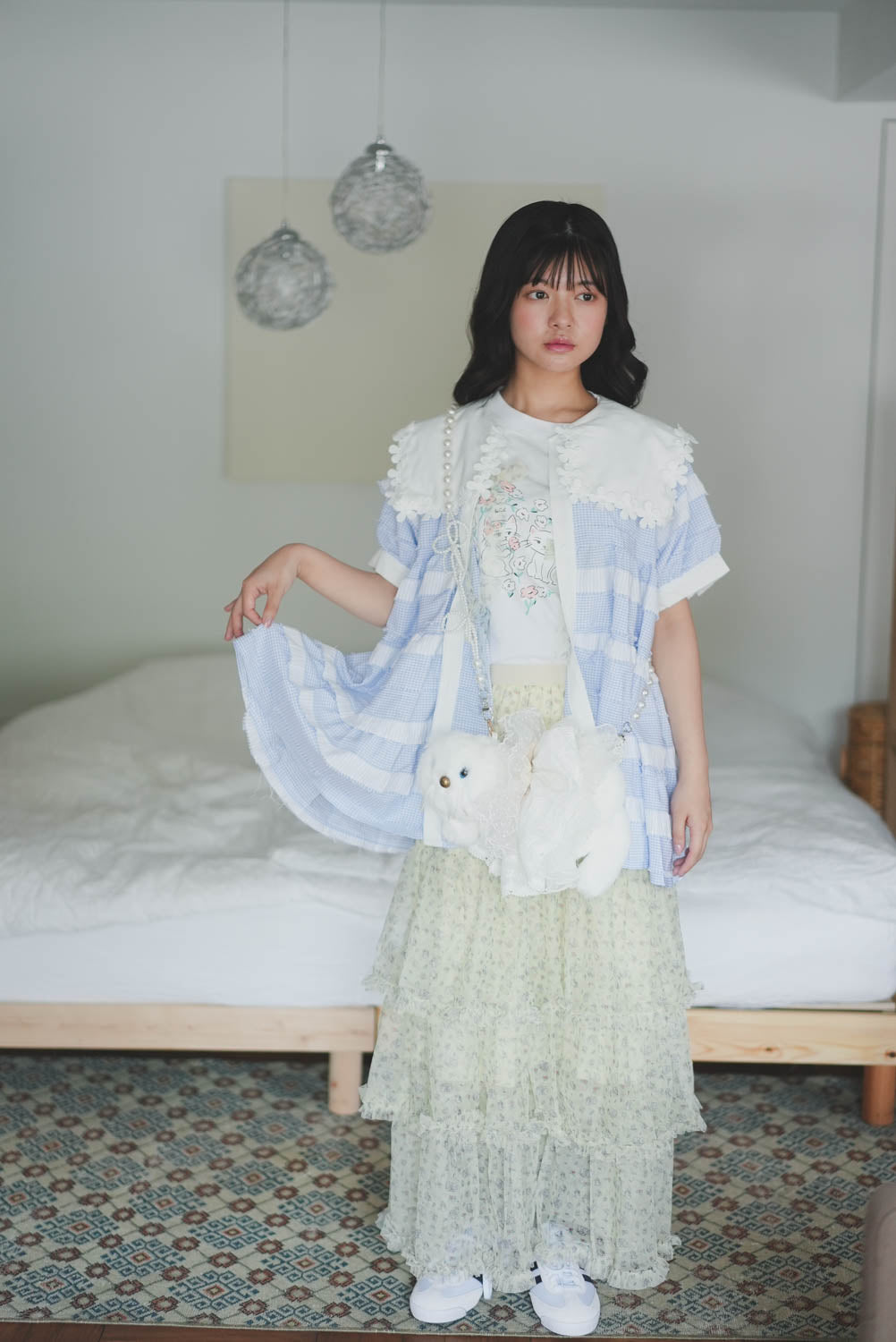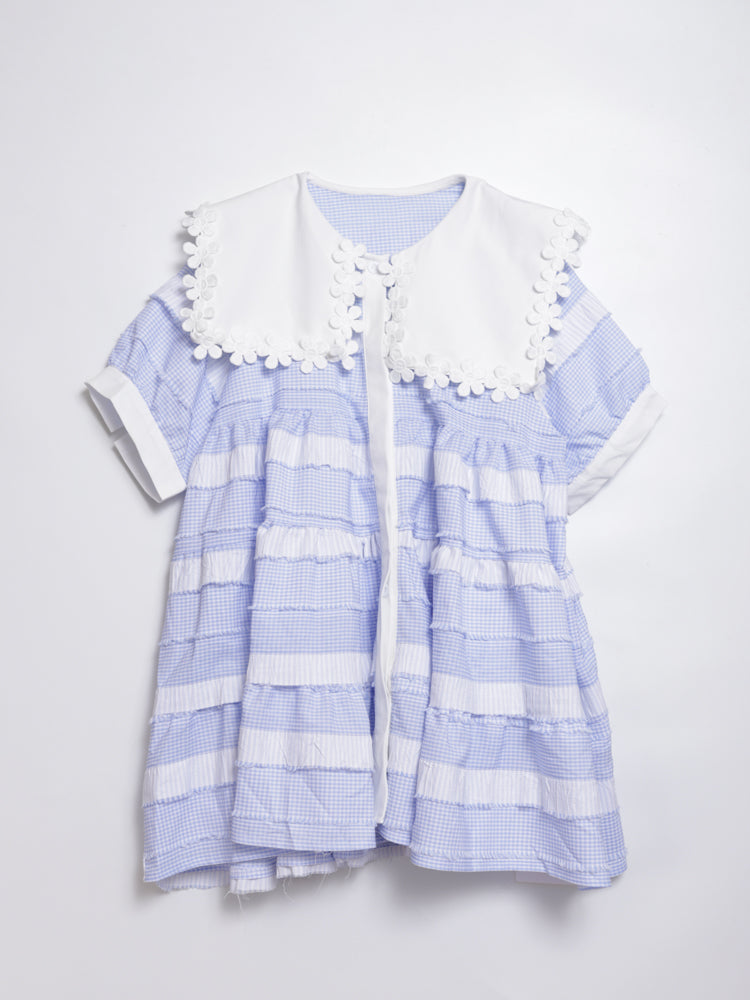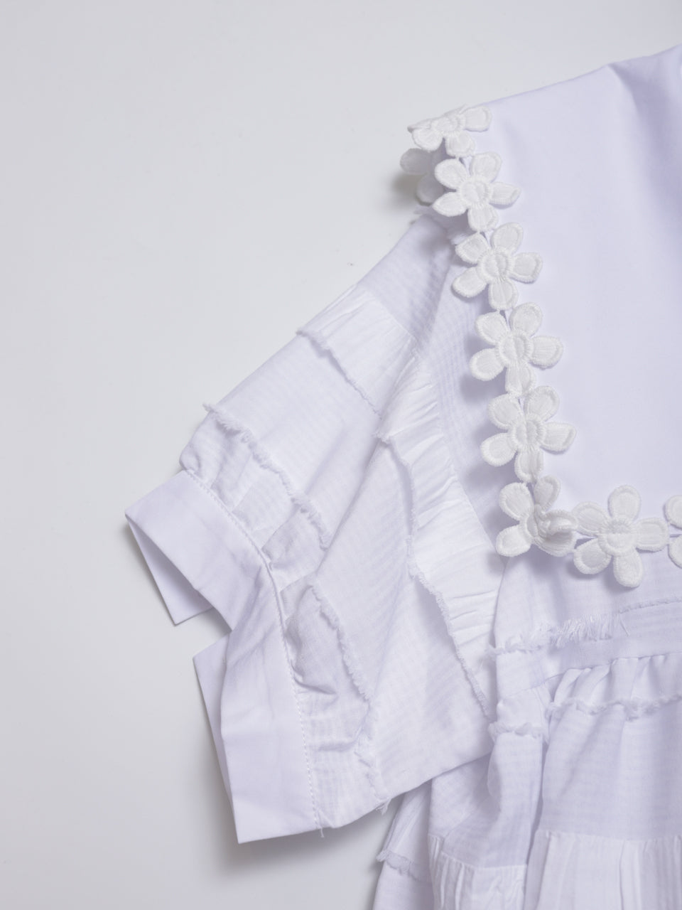 • Lace Collar Branch White Ruffle Top