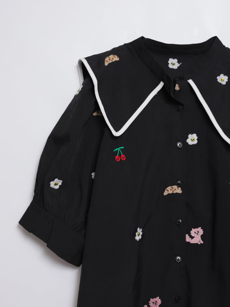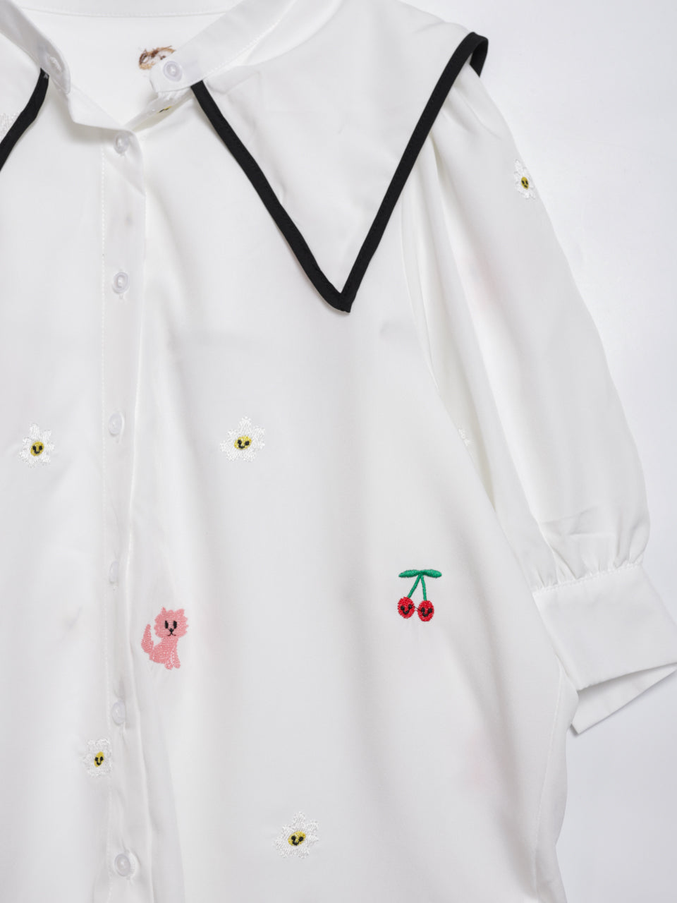 • Sunny Cat Island Embroidered Hem Neck Shirt